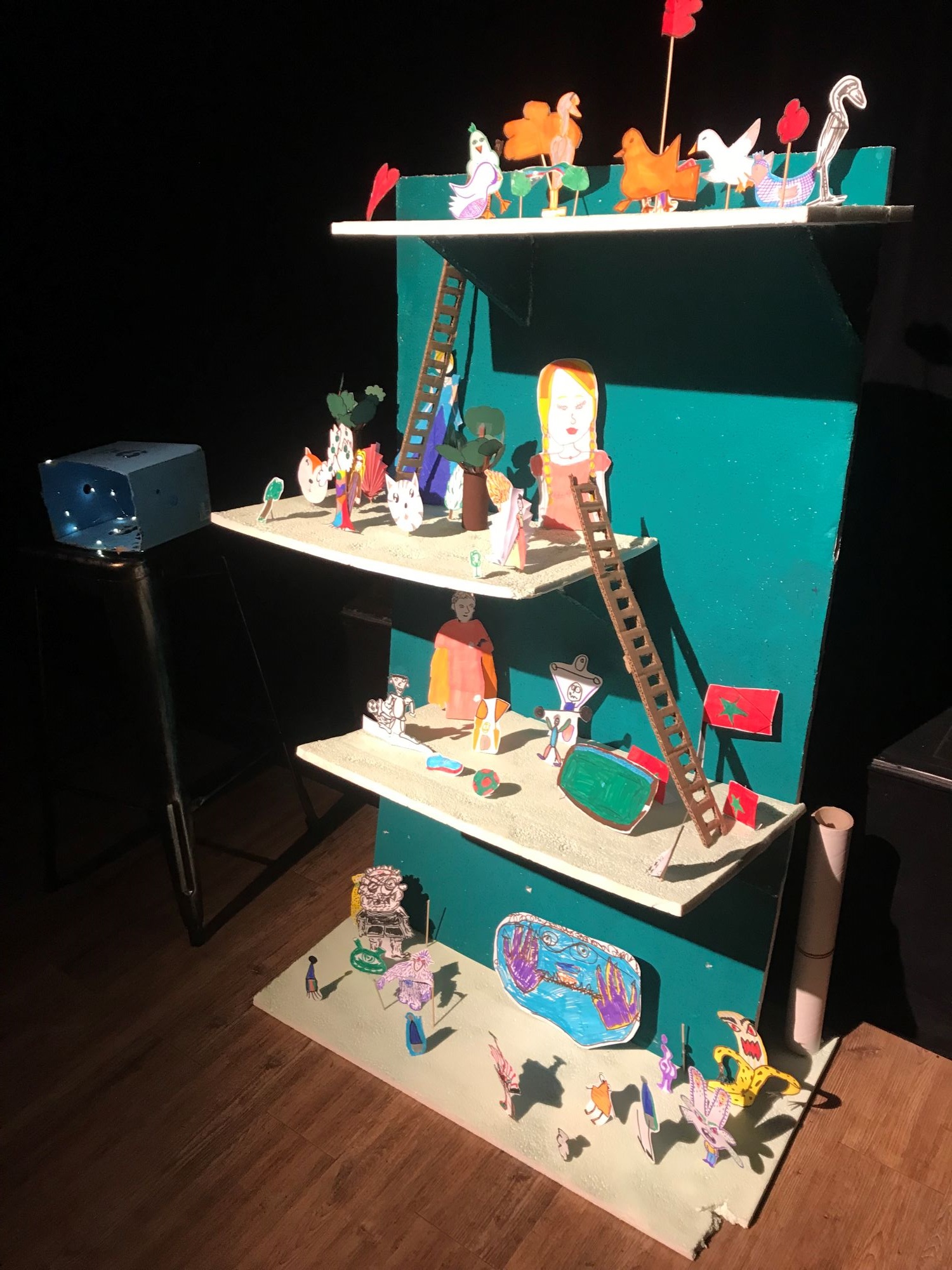 Pendant une semaine, les enfants du bidonville du Bonnier et les enfants fréquentant l'IPEICC ont construit une Maison sonorisée à ras bord, où notre pauvre facteur déambule du sous-sol au ciel et aux oiseaux, sans oublier la Pièce Cachée qui contient tous nos trésors.